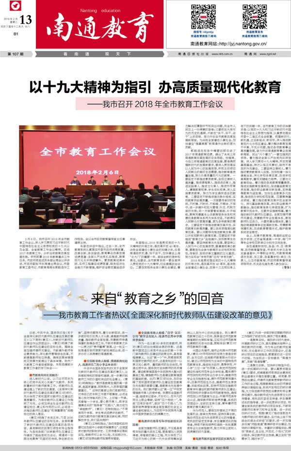“六个着力”开启2018南通“教育之乡”奋进新篇