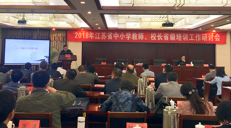 近日,江苏省中小学教师校长省级培训研讨会在镇江召开,省教育厅师资处、省师训干训中心的领导出席会议,来自全省设区市教育局师资(人事)处长,各承担省市合作培训项目的基地负责人、“名师送培”承办单位负责人等100余人参会。