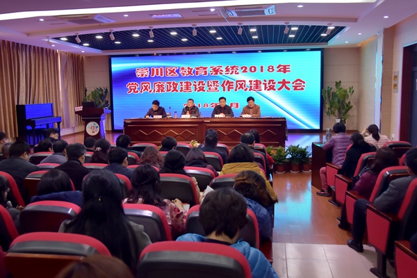 3月19日下午,崇川区教育体育局在郭里园小学和乐楼报告厅召开了崇川区教育系统2018年党风廉政建设暨作风建设大会。崇川区纪委副书记、监察委副主任丁静华,崇川区纪委派驻第八纪检组组长汤建华,教体局党工委书记、局长王根宝出席会议。区教体局机关全体成员、区属各中小学教育集团、中小学校、特教中心、幼儿园领导班子成员、中层正职干部和内部监督委员会主任等200余人参加了会议。